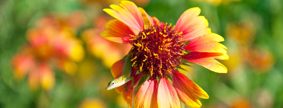 • Create a garden that is beautiful to you and helpful to the beneficial creatures by selecting plants that provide year-round interest, habitat and nutrition. Do this by first selecting foundation or anchor plants such as ornamental grasses and evergreen shrubs to provide the backbone of your garden. Next, select plants that provide a variety of height, color and texture (size of the leaf and size of the blooms.) Place taller plants to the back and shorter plants at the front. As you become more familiar with your garden design, play with these heights to provide movement and character.