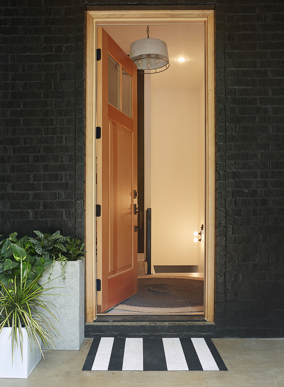 While designing, Newcomb saw a picture of a monochromatic house with one wildly painted door. When she suggested the idea to White, she asked, “Is this weird?” White replied, “Yes, let’s do it!” The door leads into the mudroom, where White carried the color into the area as well.