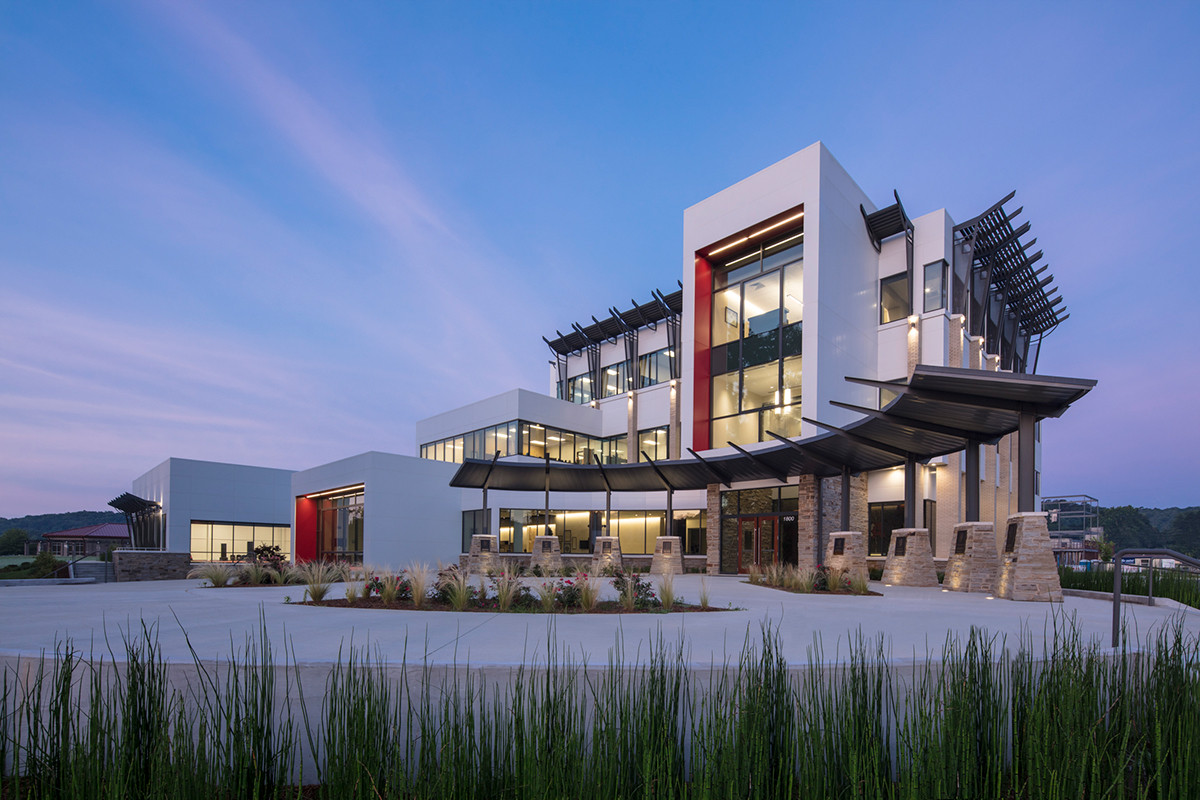 The American Taekwondo Association opened its world headquarters, based in Little Rock’s Riverdale, in 2016. The building is divided into three main programmatic elements: the 33,800-SF operations office, which is located on three floors of the main office tower; the 5,000-SF martial arts museum located on the first floor; and the 6,500-SF training center located at the southern end of the facility.