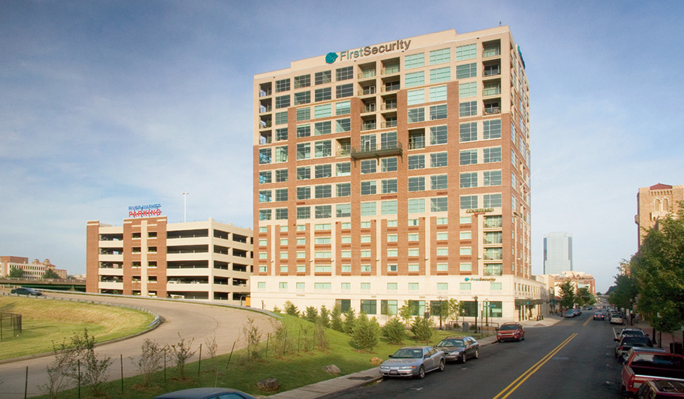 Built between Little Rock’s River Market and the site of the Clinton Presidential Center, this 14-story highrise houses a 120-room Marriott Courtyard Hotel, 24 condominiums, offices for Crews & Associates and yes, a First Security Bank branch on the ground floor.