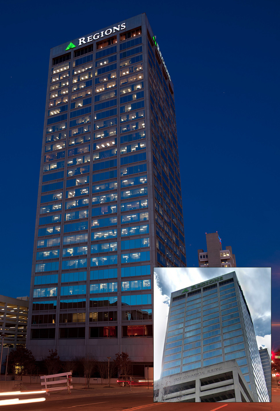 Though it’s been named after Regions Bank since 1998, some of the building’s former tenants still have their names on the property.