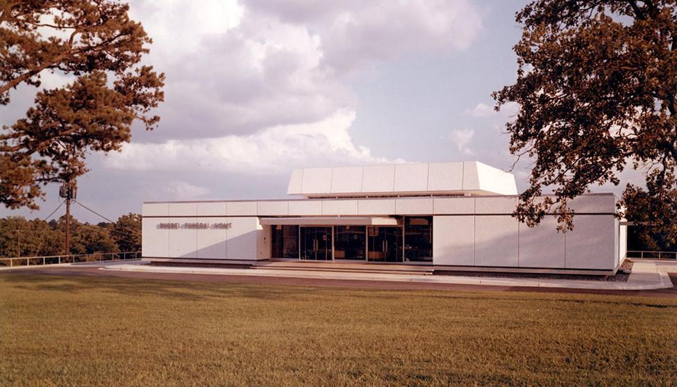 Designed in 1959, Rubel Funeral Home opened its doors on West Markham Street in 1963. At the time, its location was considered to be on the far western outskirts of Little Rock. Today, it’s a quiet anchor doing steady business amidst its retail neighbors, such as Park Plaza Mall across the street.
