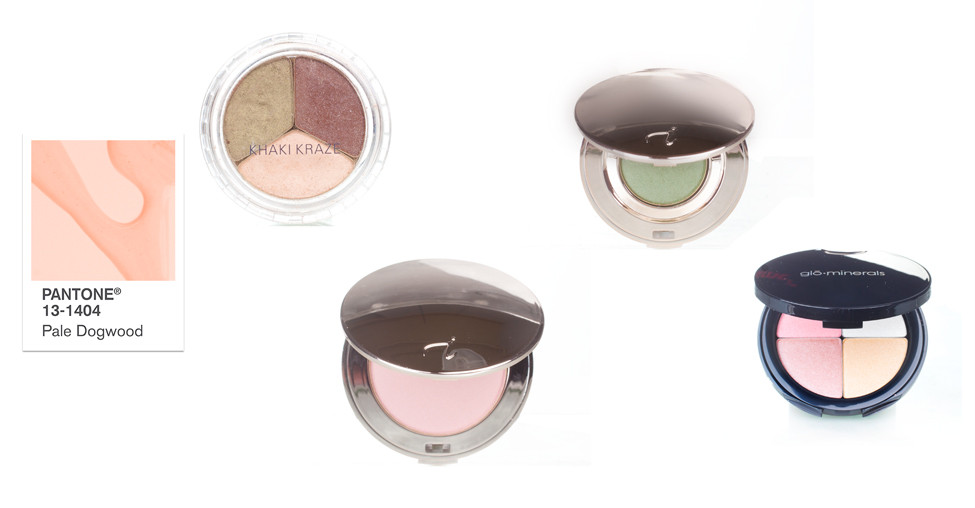 From left: Jane Iredale PurePressed Khaki Kraze Eye Shadow, PurePressed Blush in Awake and PurePressed Eye Shadow in Forest, all from Advanced Aesthetics; Glo-Minerals Shimmer Brick in Gleam from The Skin Retreat