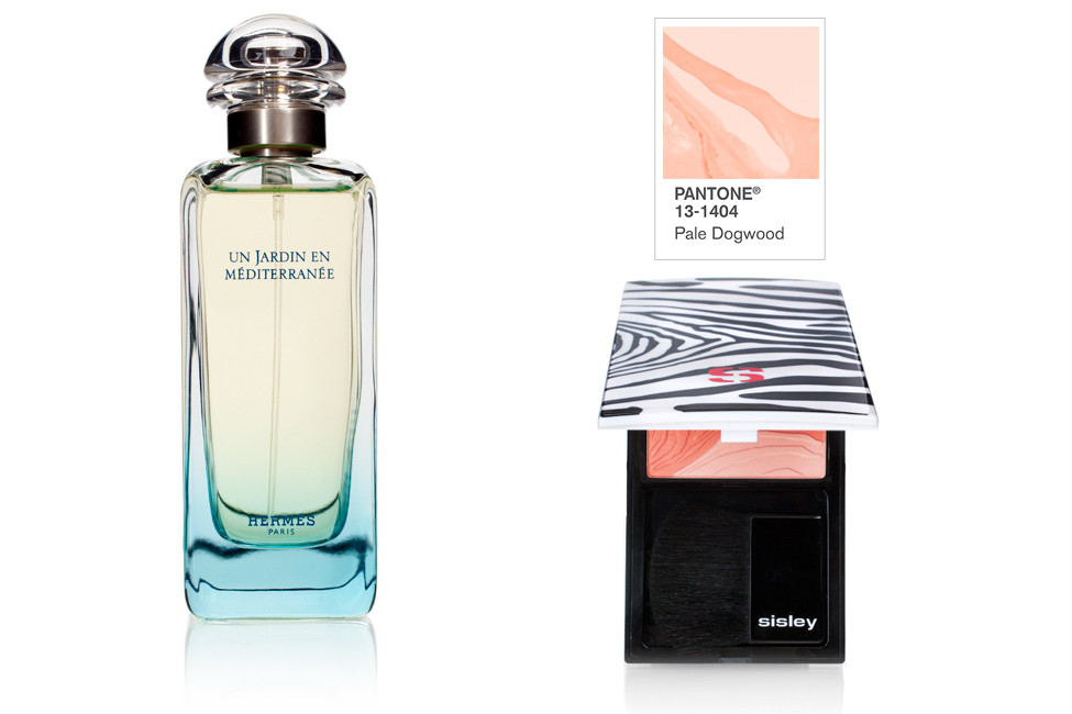 Hermes Paris Un Jardin en Méditerranée perfume and Sisley Paris blush in Pinky Coral from B. Barnett