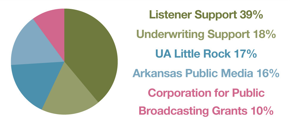 UA Little Rock Public Radio is listener-supported radio. Most funding comes from listeners and businesses in Central Arkansas. UA Little Rock Public Radio hosts on-air fund drives, special events, and community engagement programs throughout the year.