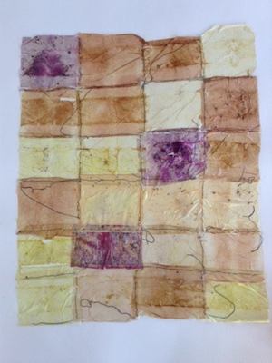 She uses the tea bags to make various abstract paintings, collagraph prints and installation pieces.