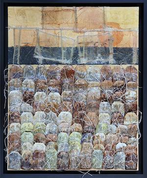 Laser is currently working on a 10-foot long, 5.5-foot wide project that will require more than 2,000 tea bags. Each bag is emptied and sewn on a large fabric backdrop. The colors of the dried tea bags bleed into each other and create a 3-D display of beiges, burgundies and rich, earthy browns.