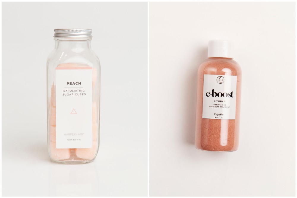 Moms love these Harper + Ari Peach exfoliating sugar cubes and this Baja Zen C-Boost Vitamin C resurfacing face buff treatment. Shop here.