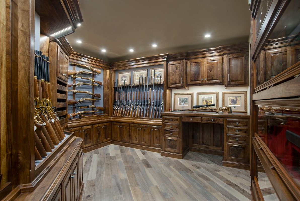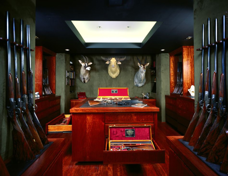 A finished gun room stands as a testament to the custom craftsmanship of Julian and Sons, whose acclaimed work can be found throughout the U.S. and abroad.