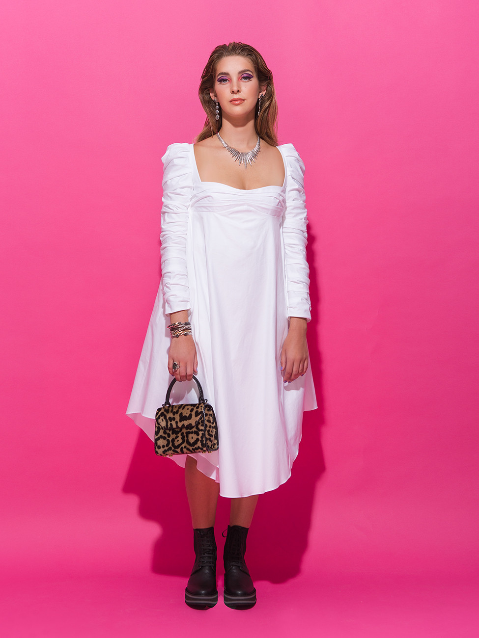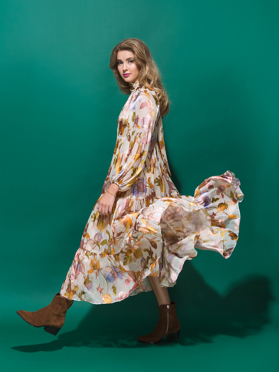 Dress by ZIMMERMAN, boots by MARION PARKE from BARBARA/JEAN. Bracelet by ROBERTO COIN from ROBERSON’S FINE JEWELRY.