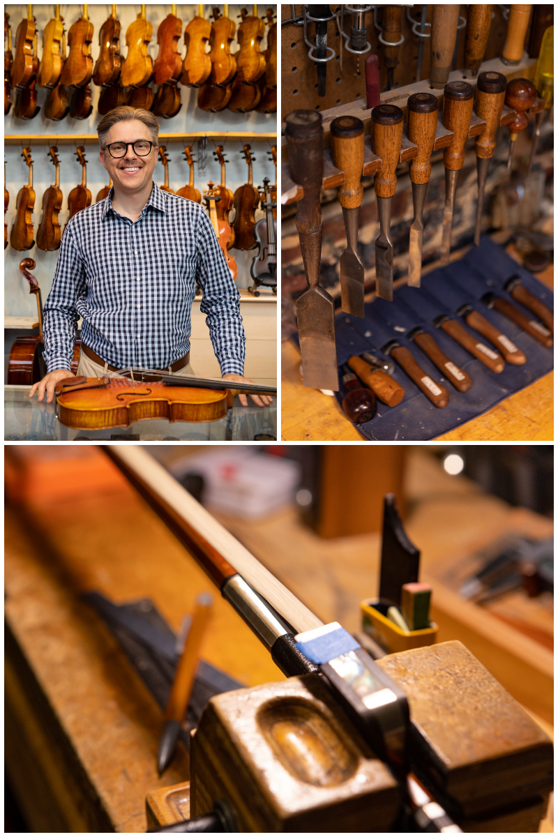 All of this experience and expertise fuels the fire he has for the craft. The shop repairs, rents, sells and appraises violins, violas, cellos and double basses along with being a full-service resource that caters to the needs of string players by providing professional repair services and instruments, bows, cases and a full selection of strings and accessories.