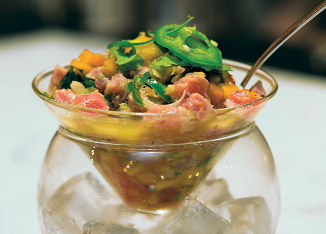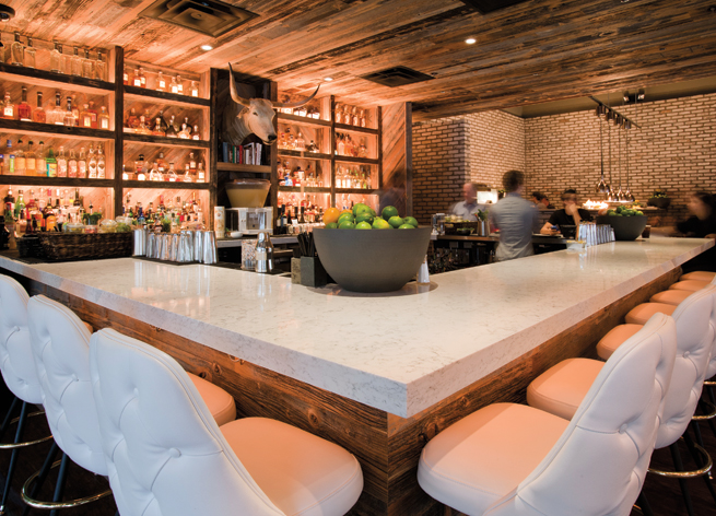 Like at Big Orange, inventive cuisine and a distinctive aesthetic are the hooks here, bringing diners back again and again. A spacious bar — covered in reclaimed wood and crowned with a stuffed steer head — serves as the dining room’s centerpiece. Tequilas and exotic liquors line the shelves, and a large margarita machine sloshes the frozen version of the restaurant’s house margarita.