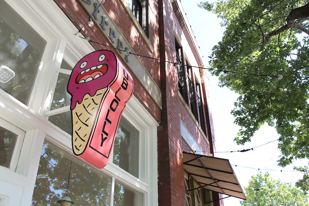 “We wanted to create a bright space that was inspired by ice cream,” Strandberg says. “Our mural, painted by Layet Johnson, was something that we wanted to act as a landing point for our main room, something that folks could explore to see the inspiration behind the brand — local, natural, handmade and fun.”