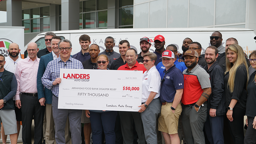 • Following the March 31 tornado, the Arkansas Foodbank received a $50,000 donation from Landers Auto Group for disaster relief.