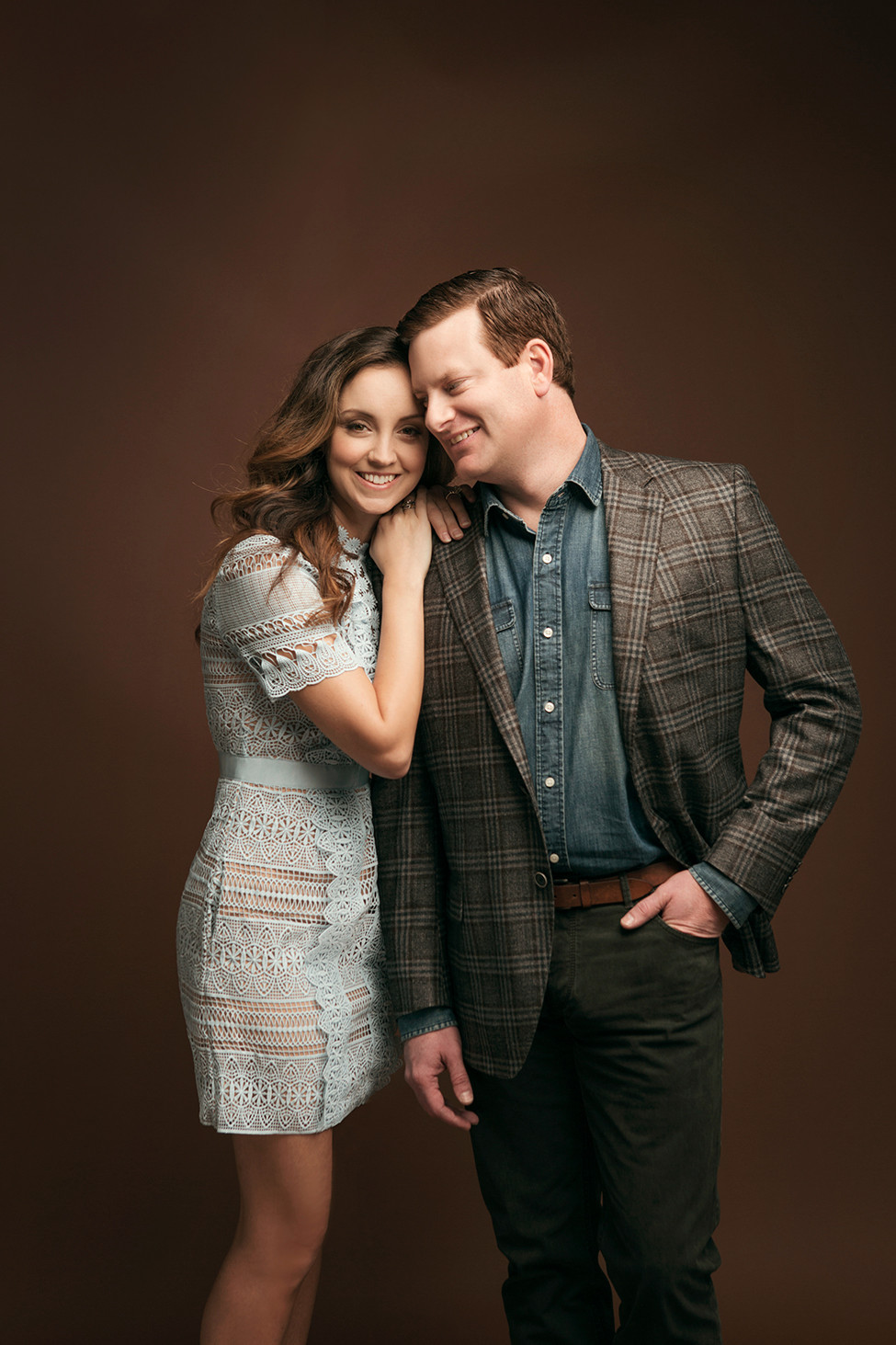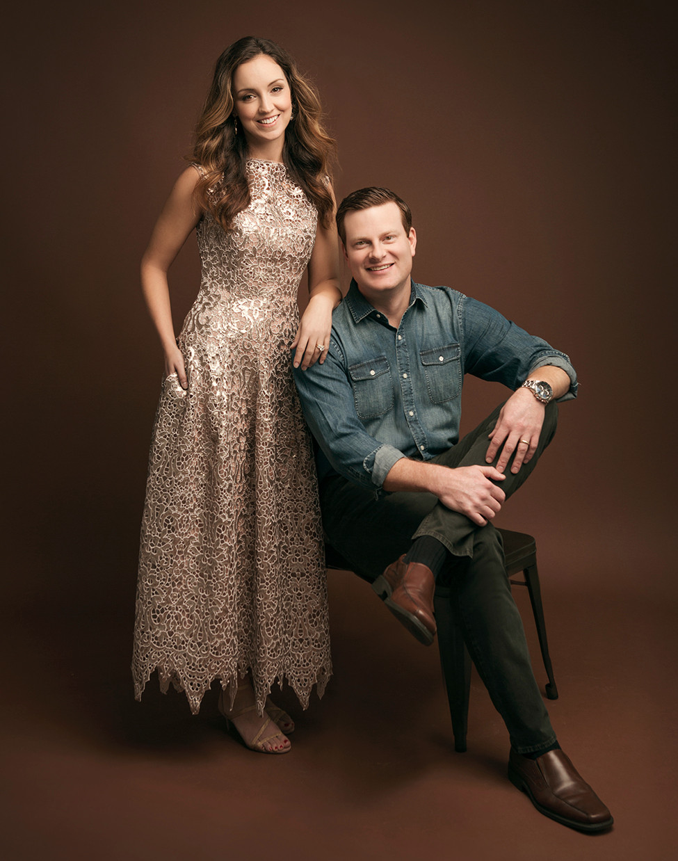 Erin’s clothes, shoes and jewelry from B.BARNETT. Hair and makeup by LORI WENGER. John’s clothes from BAUMANS FINE MEN’S CLOTHING. Styled by ANGELA ALEXANDER.