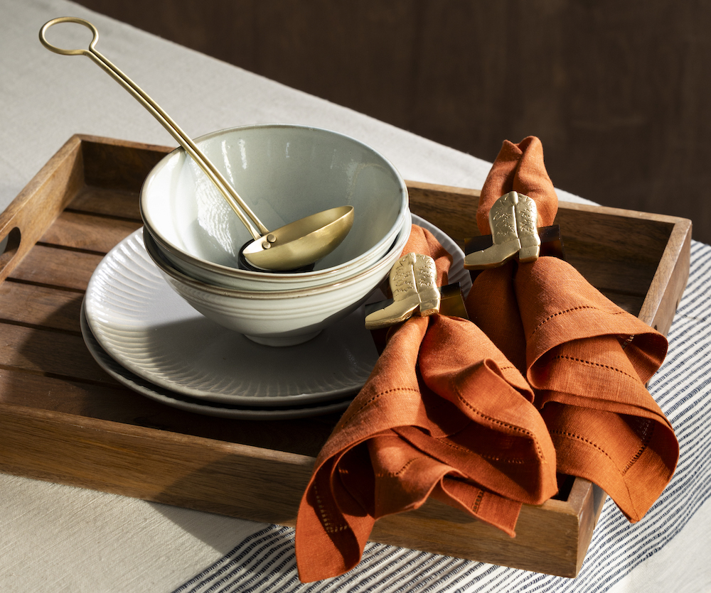 Bowls, ladle from Box Turtle. Sferra napkins, Southern Tribute napkin rings from Fresh I.D.