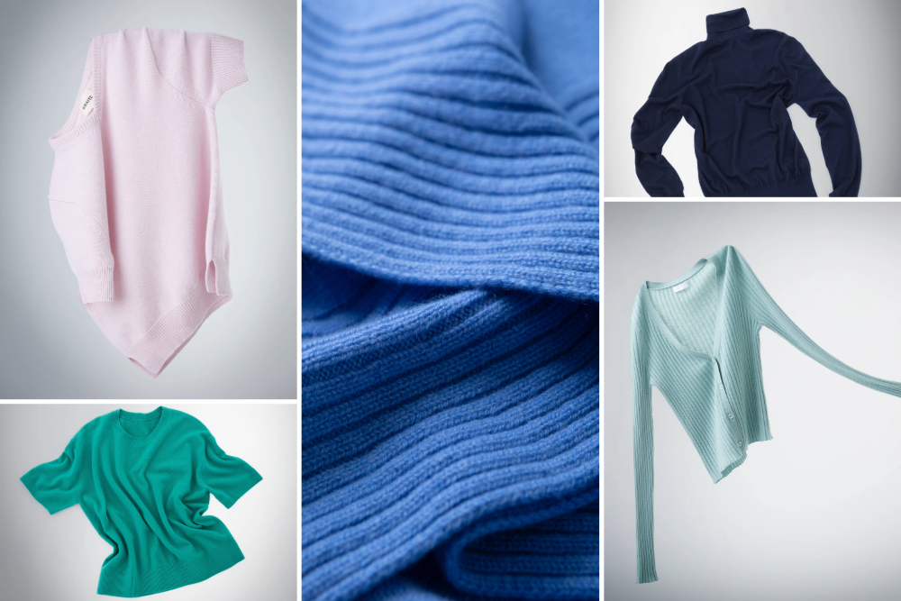 Clockwise from top left: Khaite “Veronica” sweater from B.Barnett. Rani Arabella “Margot” cardigan from Barbara/Jean. The Row “Eva” turtleneck from B.Barnett. Sablyn “Liliana” cardigan from Barbara/Jean. Sablyn “Miller” short-sleeved sweater from Barbara/Jean.