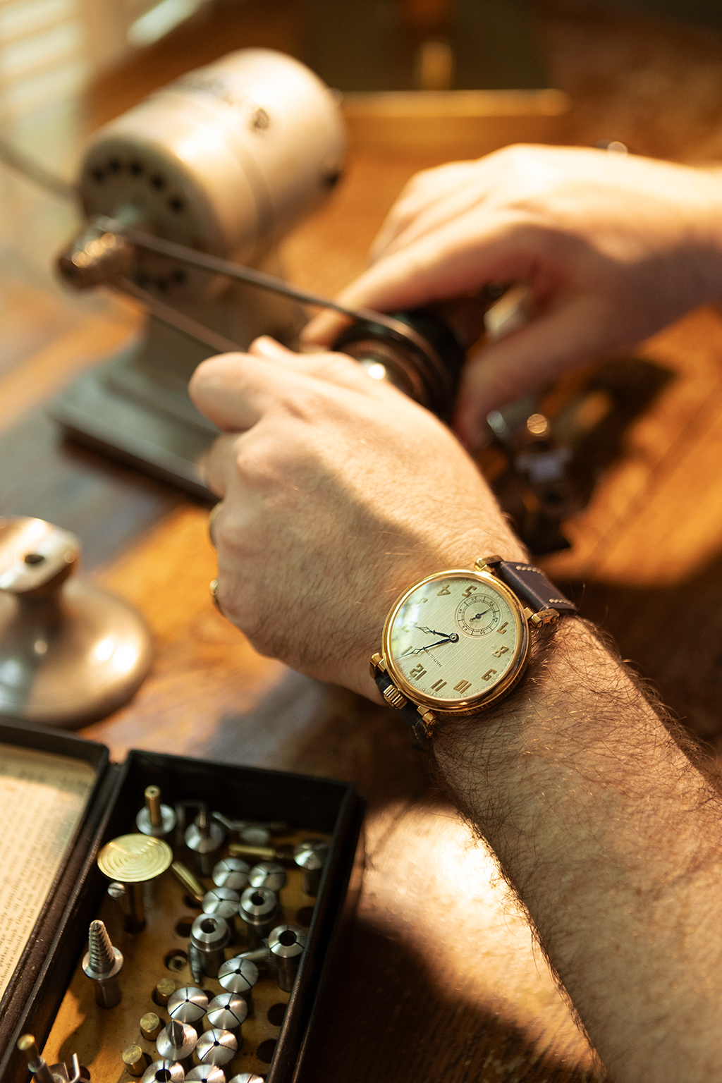 KF: Both are possible. Everything we do to a piece is completely reversible, from thermal coloring to converting a pocket watch to a wristwatch. Maintaining originality is our top priority, but we believe you can change the way the piece is enjoyed without compromising its heritage or integrity. Each piece we work on can be restored to its original form. In fact, we try our best to source pocket watches in their original cases, which we always send to customers along with their conversion. We are dedicated to preserving these pieces while also creating new ways to enjoy them.