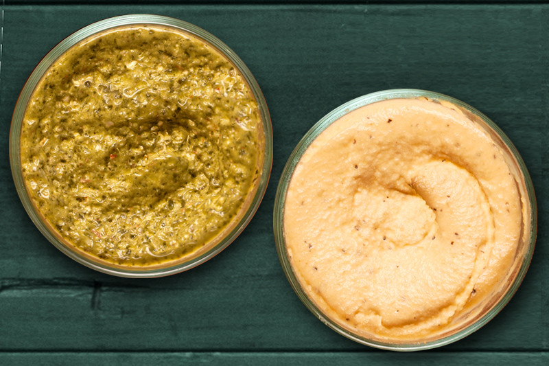 Geek Eats Cilantro Almond Pesto and Original Hummus