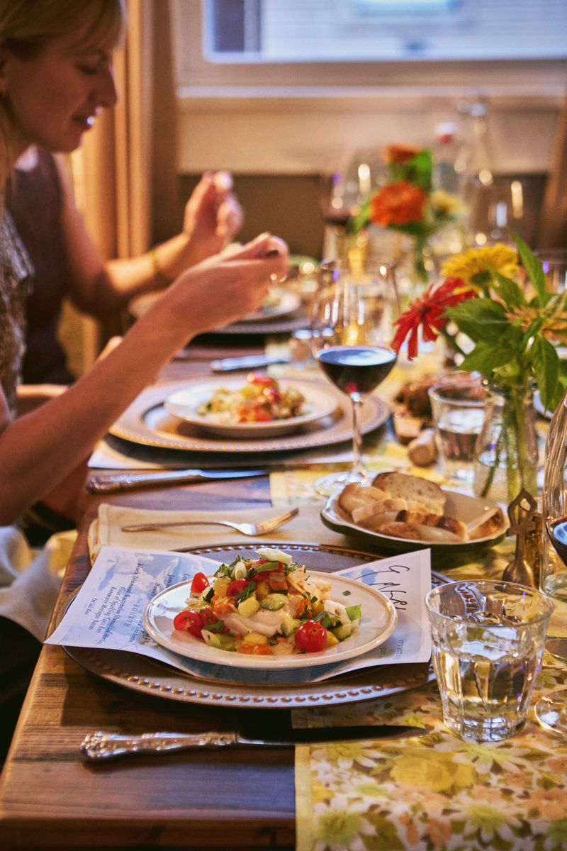 “I used to give people a prompt to talk about, which was fun, but I found very quickly that people didn’t need it,” she says. “You already have something to talk about: You can talk about the food, about the wine. It gives you a really easy way into developing a relationship.”