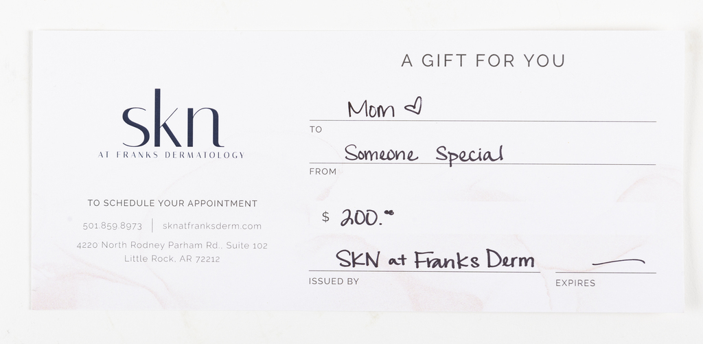 SKN gift certificate from SKN AT FRANKS DERMATOLOGY.