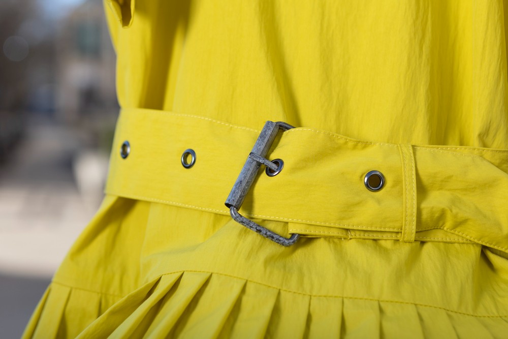 The vibrant citron-colored fabric is a cotton poplin and nylon blend, which makes it lightweight and comfortable for upcoming temperature changes.