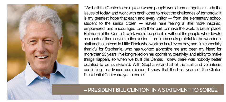 However Streett’s other job, the one she is paid to do, is pretty important too, and more so these days. As part of her Foundation duties, Streett oversees operations of the Clinton Presidential Center, which is celebrating its 10th anniversary with a host of exhibits, functions, visiting dignitaries and tie-ins with other museums and institutions around Little Rock.
