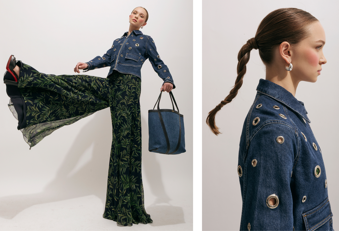 “I love unexpected pairings, but each item also stands alone. The Cinq à Sept grommet jacket would be great over a chill sweatsuit as a pop.”