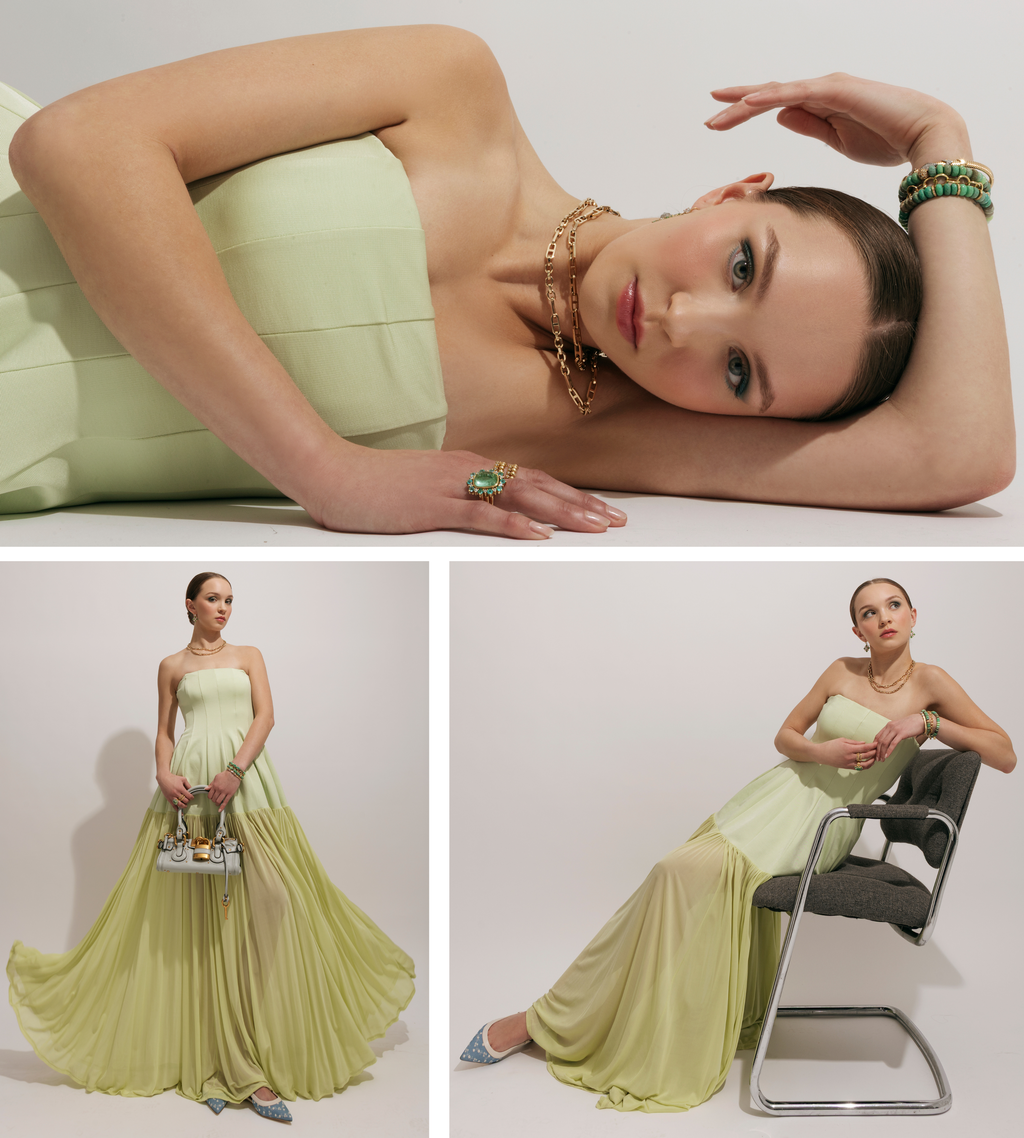 Explore eight dynamic looks paired perfectly with dazzling accessories that capture spring’s energy.