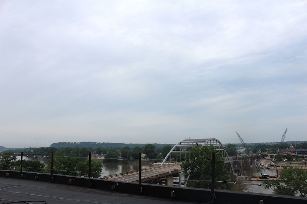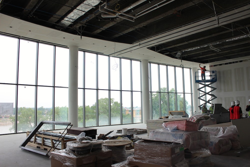 On the back of the building is the grand ballroom with floor-to-ceiling windows facing Broadway and the Arkansas River, and which connects to the DoubleTree Hotel next door, greatly improving the conference space. Upstairs is the 5,800-SF wraparound terrace with an even more astounding view, as well as various meeting rooms with terrace access and river views.