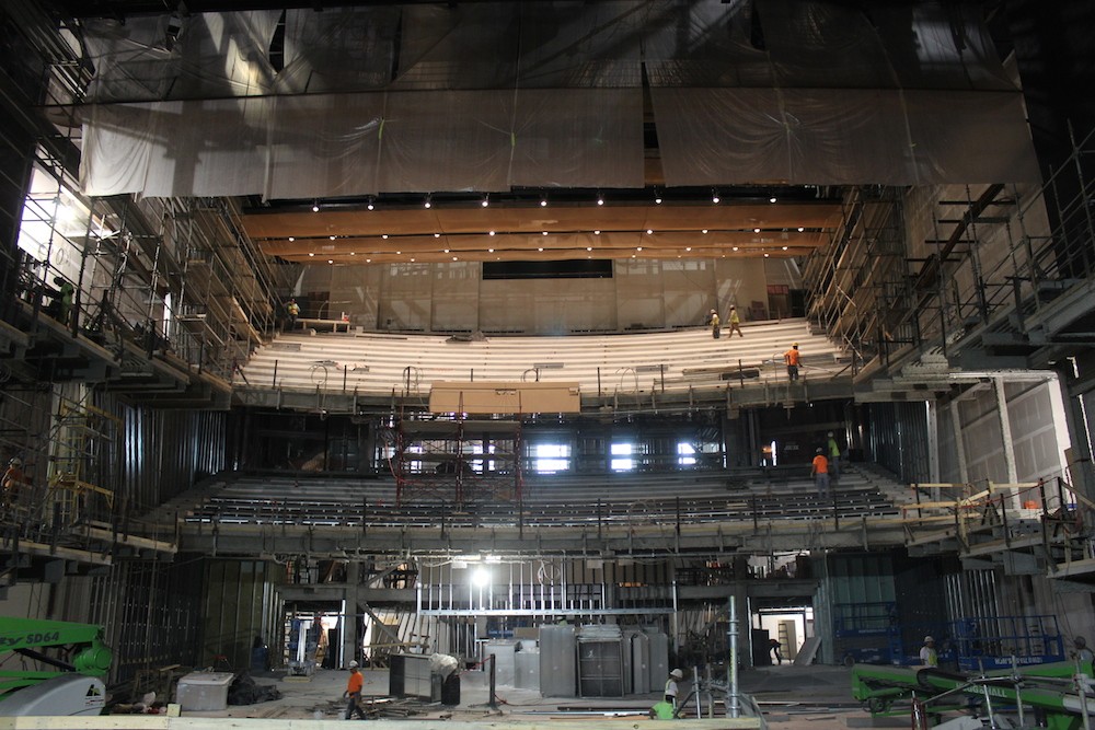 In the performance space, added side box seating and grand and upper tiers bring the total capacity to 2,214. The boxes will eventually be available to ASO and Celebrity Attractions season subscribers. Added height in the space — along with the daunting task of dropping the stage a hefty 36 feet — bring a much more intimate feel, pulling the audience closer to the stage.