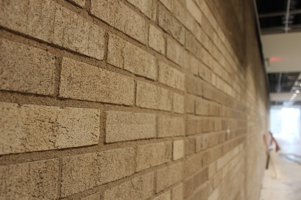 In the upstairs lobby and meeting rooms, the crew decided to leave the original art deco-style, brick of the Robinson exposed. They’ve also enclosed a few of the Aztec masks that once donned the side of the structure, and completely restored elements of the 1939 lobby details like chandeliers and wall medallion replicas.