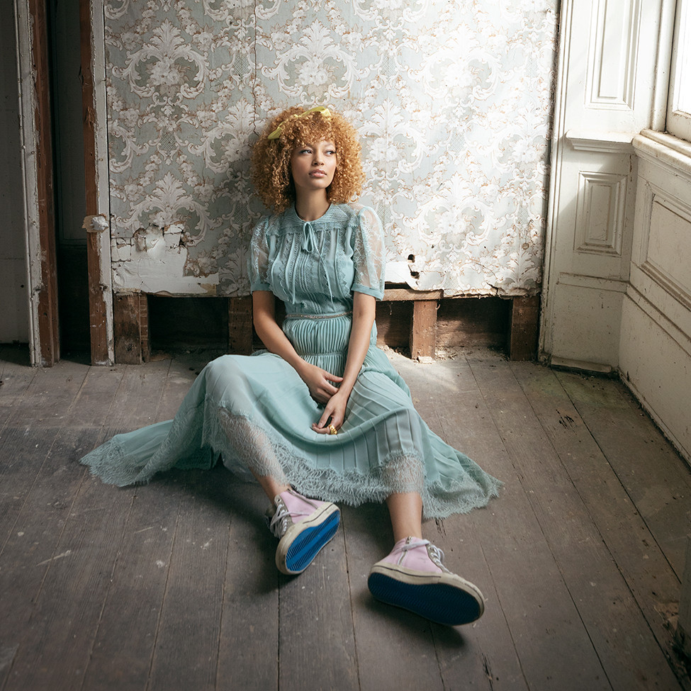 Dress by SELF-PORTRAIT, shoes by GOLDEN GOOSE from B.BARNETT. Ring from BOX TURTLE.