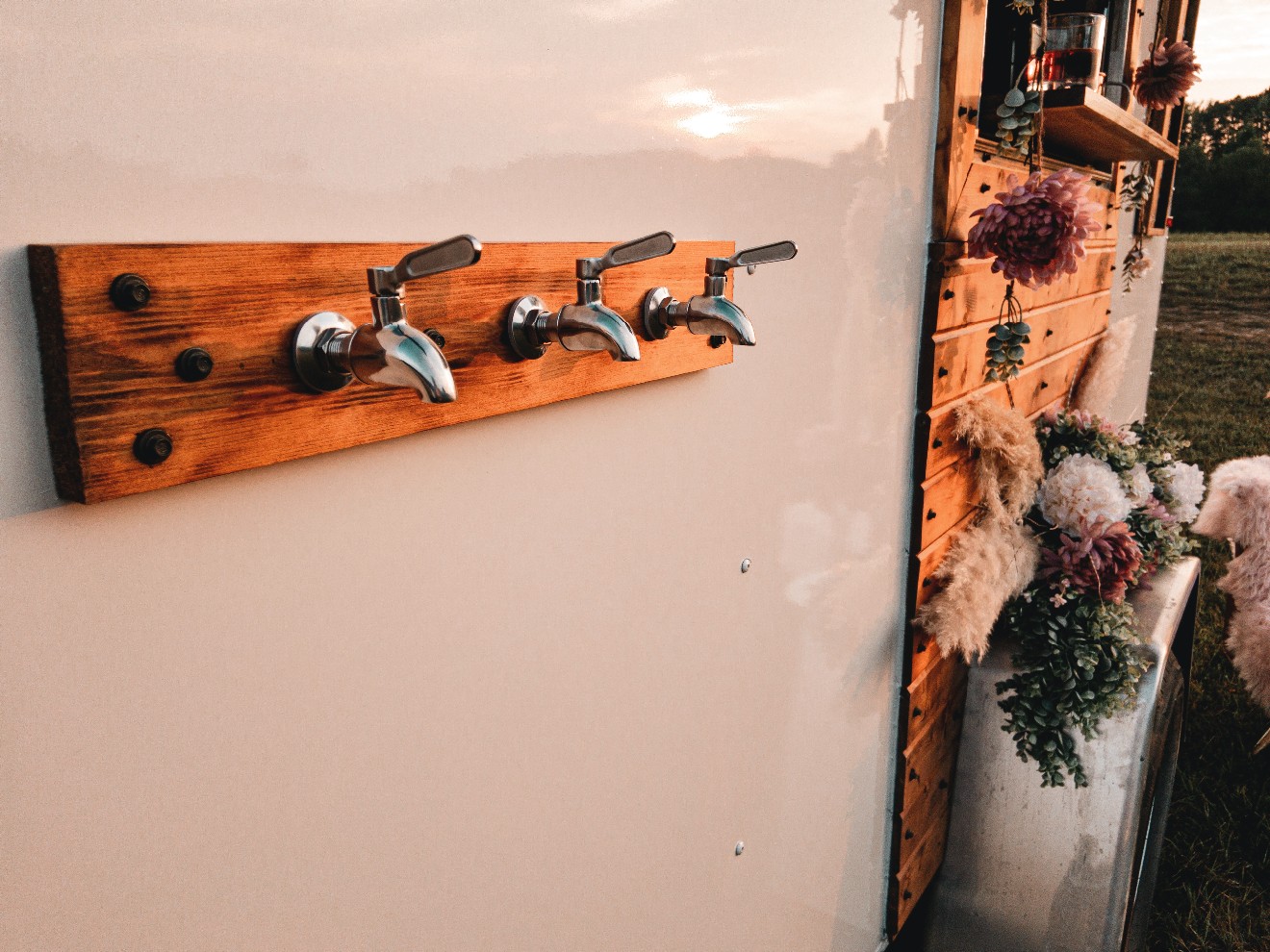 “We wanted to make it as customizable as possible and figured that the spigot system aligned with that,” Taylor says. “Part of the vision when we were writing down our goals was to take the stress out of that part of wedding planning for the host.”