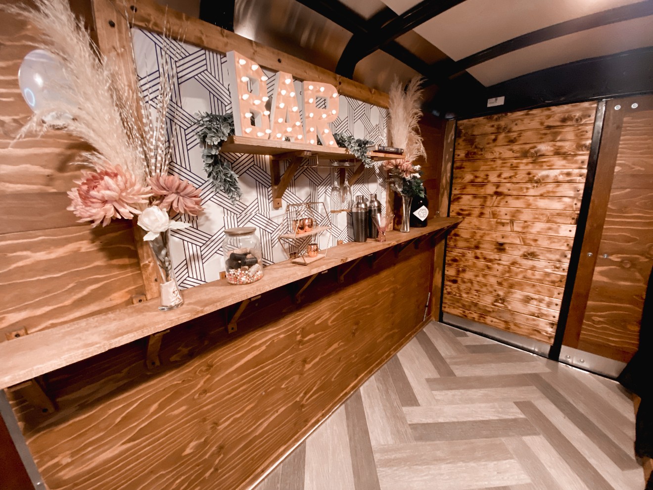 They bought their trailer for renovations shortly after. With the help of Rhodes’ father Marty, they worked to renovate the empty enclosed trailer into a stylish, event-ready mobile bar. They added not only a serving window, but a customizable double bar for larger events. They purposefully purchased an interstate trailer so that they can serve events all over Arkansas.